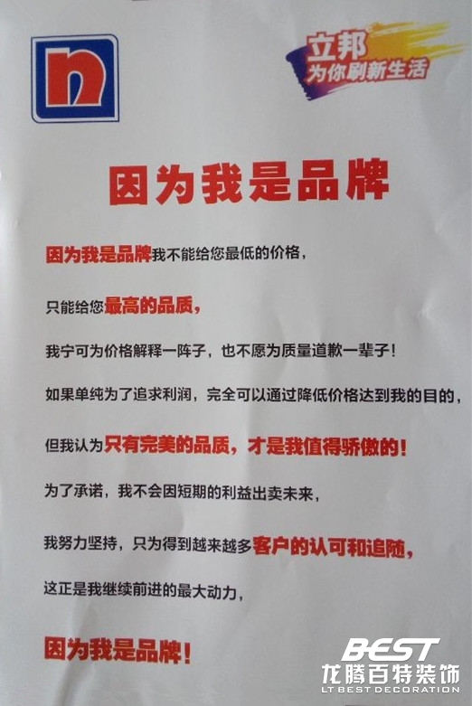 2015年龍騰百特裝飾公司將全面推出使用立邦無膠產(chǎn)品體系,讓家更環(huán)保!
